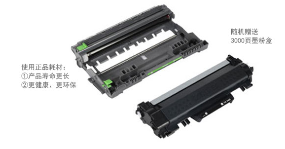 隨機贈送3,000頁墨粉盒及12,000頁長壽命硒鼓。當墨粉用完,用戶僅需更換墨粉盒,而無需更換硒鼓,有效降低用戶的耗材使用成本。