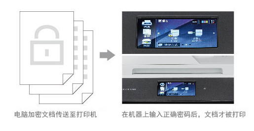 對(duì)于一些機(jī)密文檔,您可以在電腦中對(duì)該文檔進(jìn)行加密設(shè)置,然后在面板中輸入正確的密碼,文檔方可被打印出來(lái)。